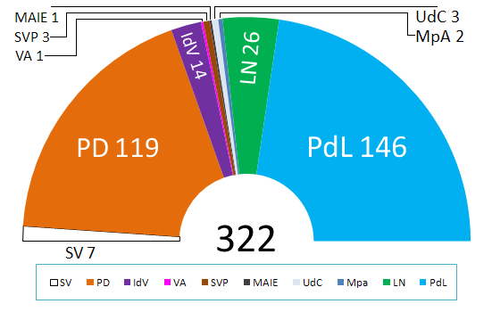 | Movimento per l'Autonomia (PdL) | 1,1% | 1,1% |